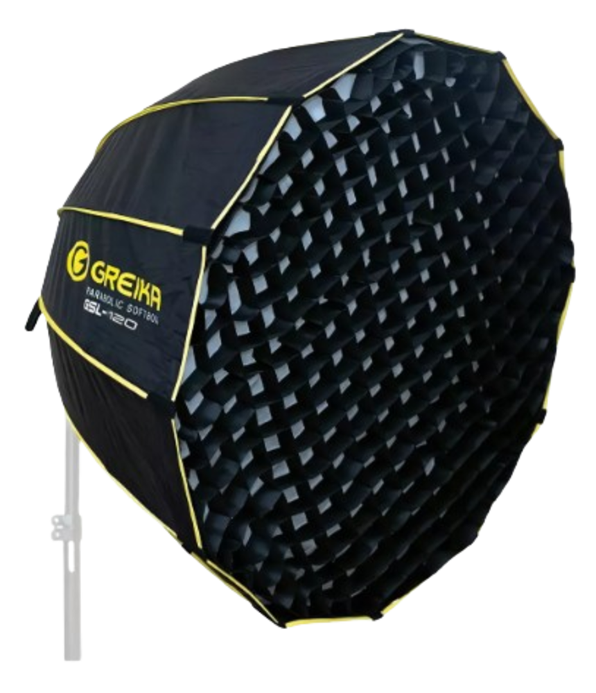 Softbox Parabólico Greika GSL120cm com encaixe BOWENS, Grid e montagem ENGATE RÁPIDO, prático.