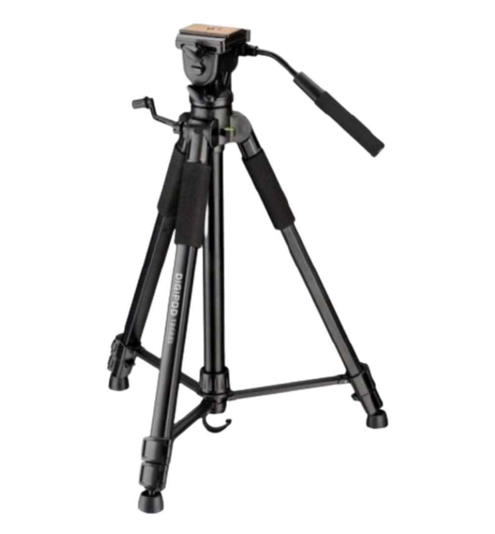 Tripé TR688V com cabeça semi-hidraulica substituto do modelo anterior TR-588V, movimentos suaves, tripe de aluminio com partes plasticas, cabeça com nivel bolha e engate rapido, alavancas de fechamentos das pernas tip flip de duas seções, pes de borrachas para maior estabilidade.